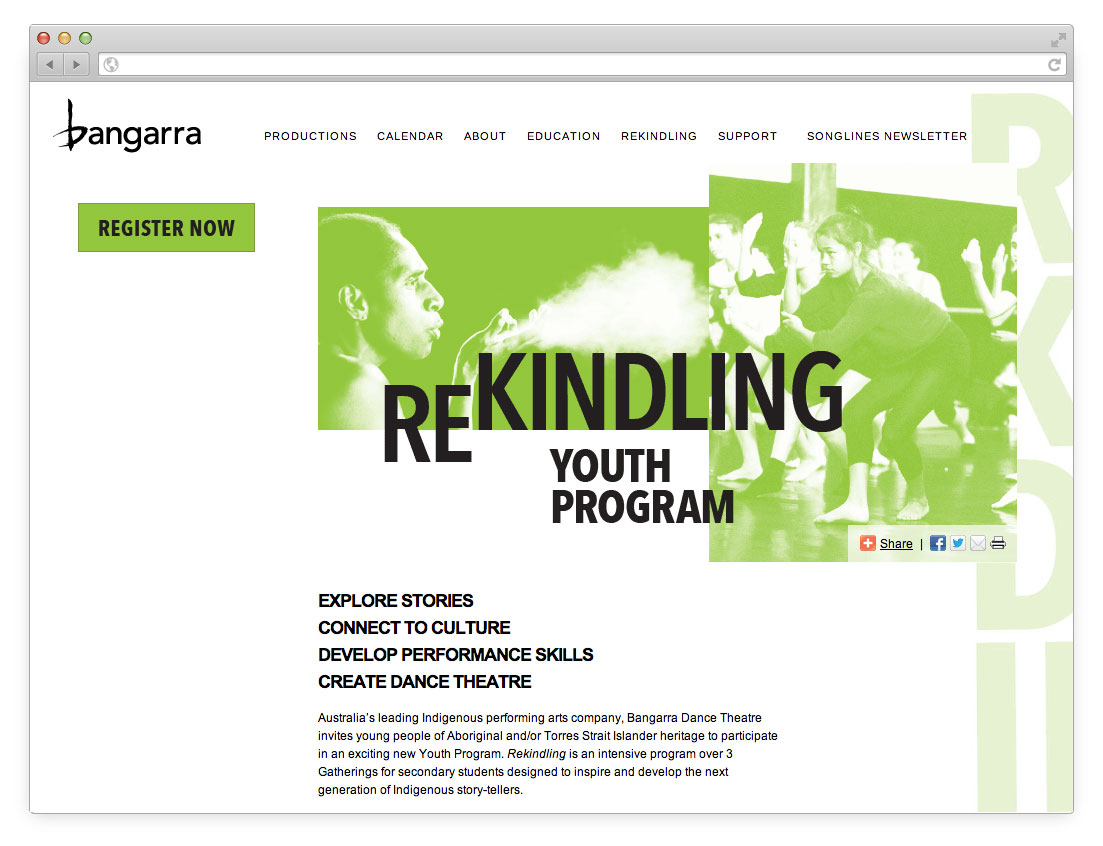 MAXCO oversaw the launch of their new website, 3 seasons of Production key art, annual reporting and regular promotional materials. We developed branding for their educational program Rekindling, and recently, their online educational resources platform, focussing on accessibility for urban and regional students.