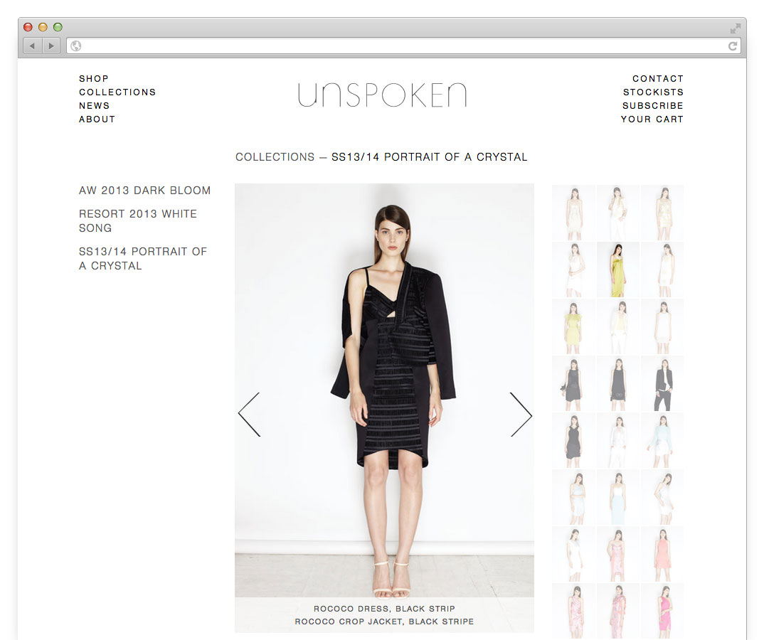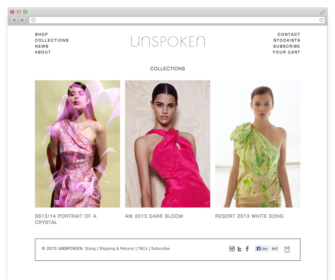 Unspoken is the independent fashion label from Sydney-based design duo, Marijana Golic and Tanya Emon. MAXCO provided a website that facilitated the control of all news, seasonal collections and an online store by a small team.